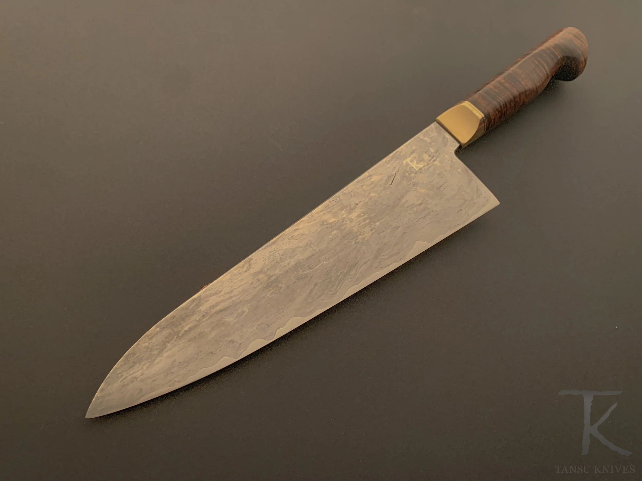 Steel : wrought iron clad 26c3 ( not stainless, around 65hrc ) makers mark inlaid in silver
