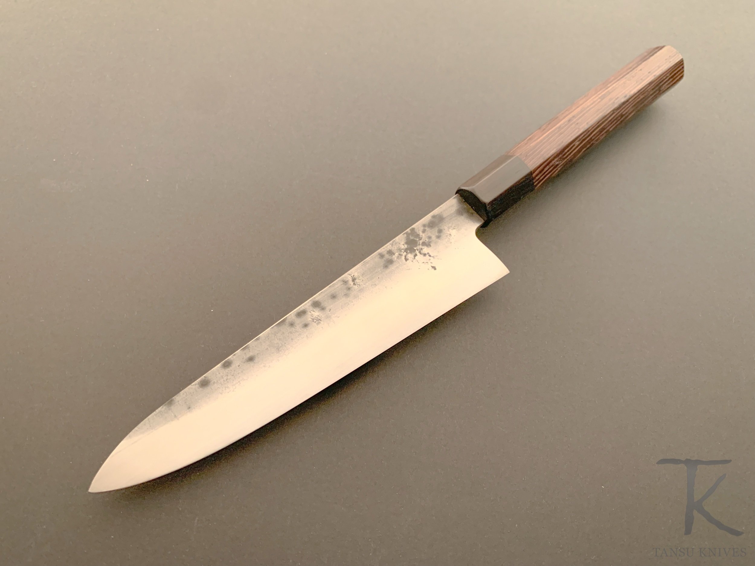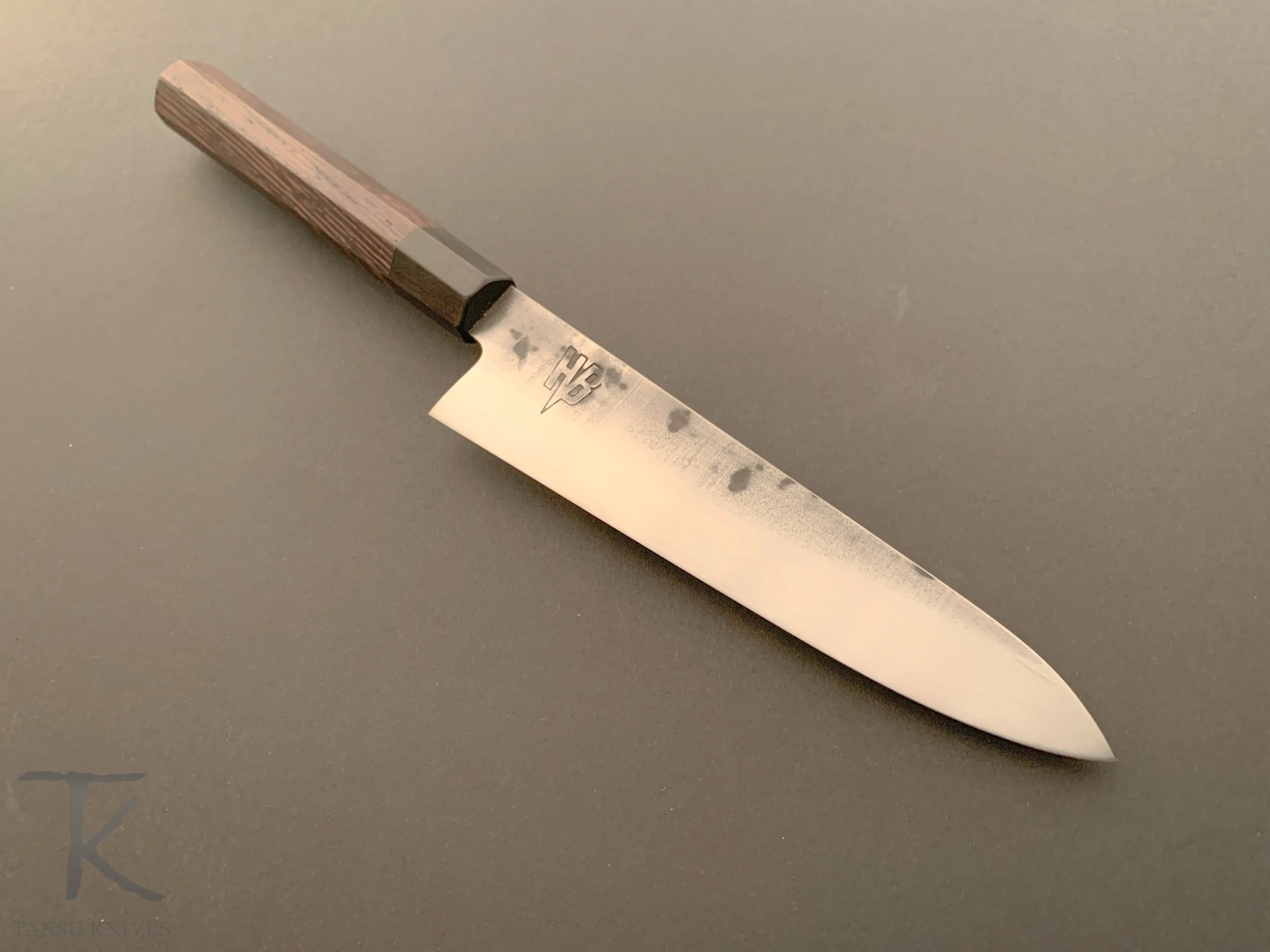Hunter Valley Blades series chefs knife that’s designed for being an all around performer for every tasks . Every component of these knives are made by me in my shop in Japanese style with forged finish and Japanese handles .