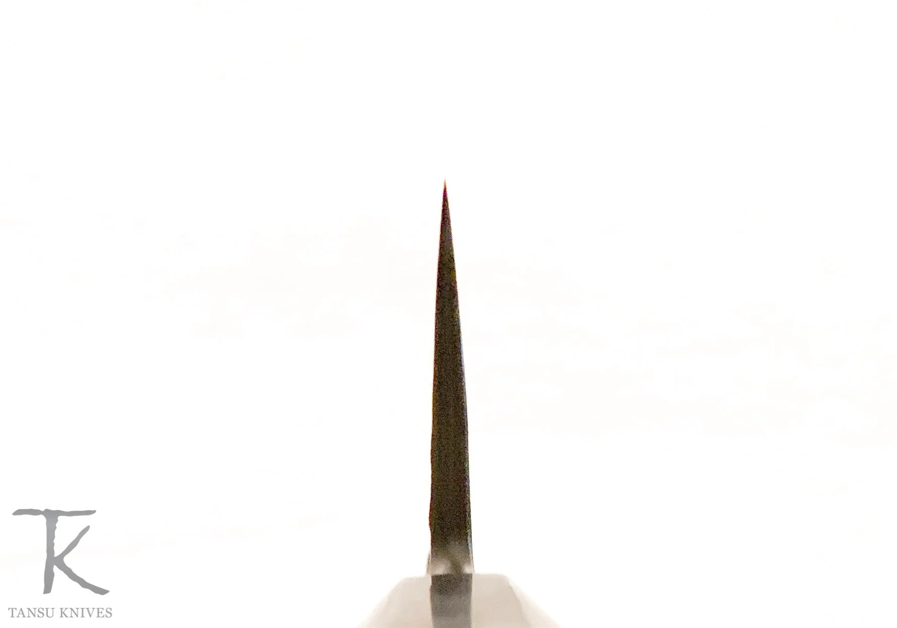 Above heel: 5mm mm midway :2.9mm a cm before tip: 1.4mm
